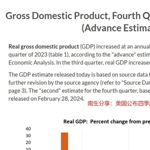 美国商务部公开的消息,2023年第四季度的经济初步统计结果为:环比增长0.8%,按年计算的增幅为3.3%,再度超过市场预期。原因是私人消费依然旺盛,政府财政开支也较为积极。