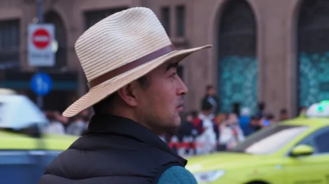 他把采访地点约在陆家嘴一家冰淇淋店,面对黄浦江,背后是成片高耸的写字楼。店员记得他在一周里已经来了五六次。那时候他已经卖掉了他的马,仍然穿着他标志性的黑色尖头皮鞋,戴着他35块钱的草帽。拍照的时候,他主动说:“我的眼睛好看。”