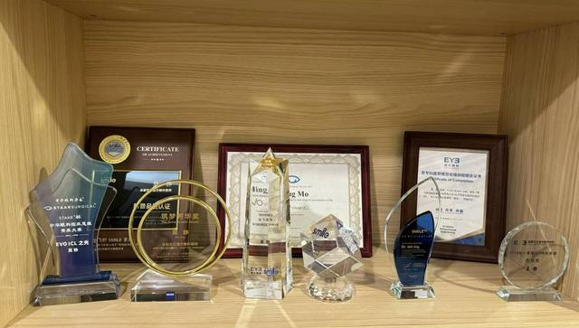 不断追求卓越。莫静将这一信念延续到了工作中。最佳口碑奖、逐梦芳华奖、优秀管理者、EVO ICL之光、全飞秒SMILE手术“科普品质认证官”等各项奖牌布满诊室。