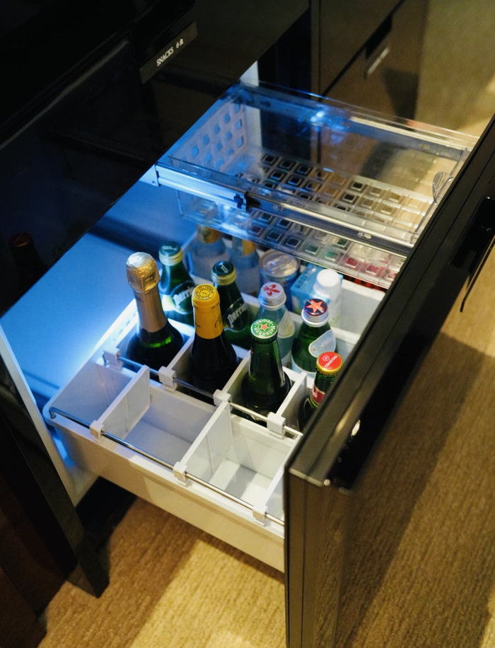 半岛在设施的细节之处也做的很到位。房间里配有智能触摸系统及11种语言操作,同时房间还配备了打印机,这个特别适合出差商务人士。房间里的化妆镜是可以升降的,需要镜子的时候,按下按钮,就会从化妆台底下升上来。另外一个细节是房间里放了瑜伽的详细动作说明指引,让住客在房间就可以进行瑜伽锻炼,很是贴心。