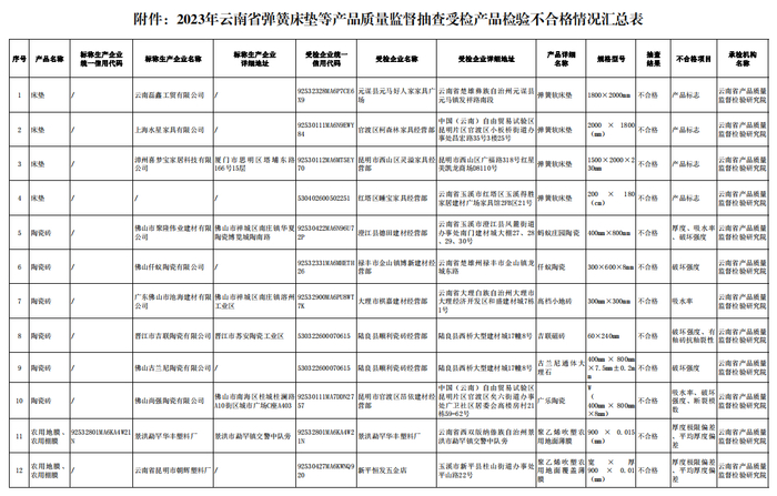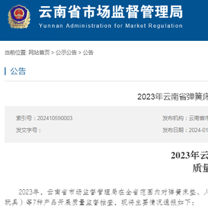 2023年云南省弹簧床垫等7种产品质量监督抽查情况通报