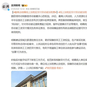 1月25日,最高人民法院、人力资源和社会保障部、中华全国总工会联合发布涉欠薪纠纷典型案例。值得注意的是,在《案例六:线上加班费应结合劳动者加班频率、时长、工资标准、工作内容等因素认定——李某诉某文化传媒公司劳动争议案》中,最高法为“线上加班费”确立了认定规则。