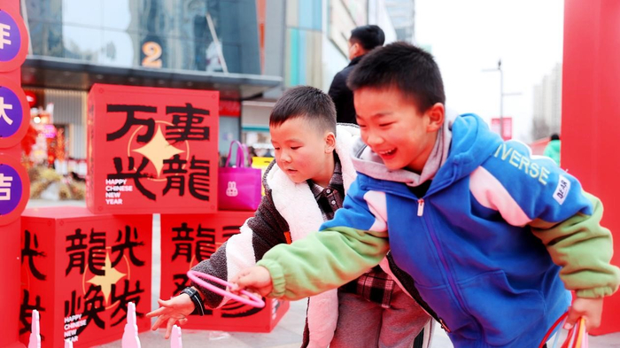 启动仪式现场设置了许多迎新春的互动体验场景,据了解,现场设置了新年祝福区、猜灯谜游戏、投壶游戏以及汉服换装区域,一步一个场景,为大家带来多元春节场景体验。