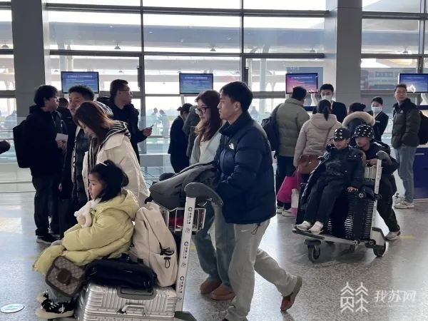 旅客唐女士带着孩子回大连老家,一家人正在禄口机场候机:“航班很多,我选择白天走。我可以早上从家里出发,中午到家就能吃到团圆饭了。”