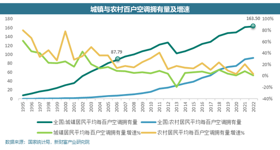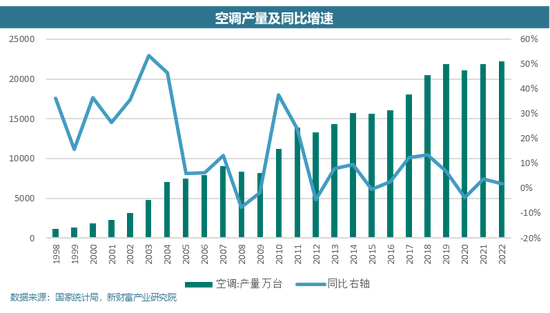 白色家电的成长空间很少受到质疑,直到近几年渗透率的提升才开始放缓。但是渗透率只是一个结果性指标,对于行业判断有一定的局限性,比如在2006年城镇居民百户空调拥有量是现在的一半,渗透率增速从2006年开始放缓,是否可以判断当前的渗透率到了天花板?实际上并不能,如果参照2022年日本百户空调拥有量(2022年,285.4台),我国现在的空调渗透率仍处在半山腰。所以从渗透率的维度判断行业的增速永远都是相对落后的,有一定的局限性。