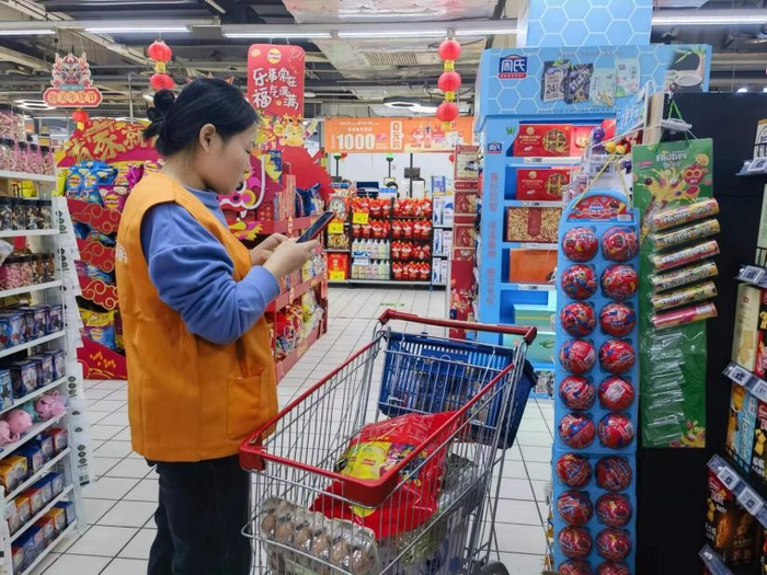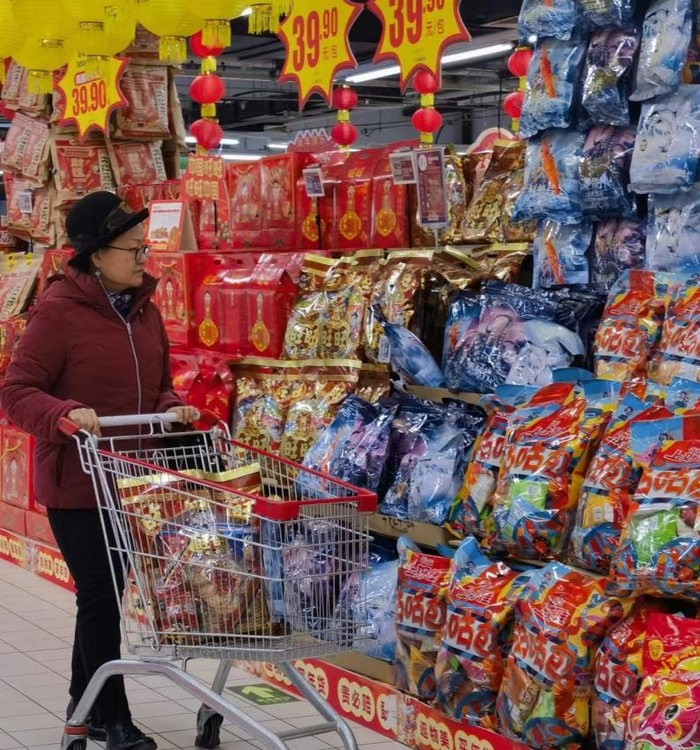“刚进超市,喜庆的节日氛围就扑面而来,转个弯,看不到头的各种零食大礼包实在让人舍不得错过。”1月25日,在北京市丰台区物美大卖场购置年货的张女士向记者说,“孩子放寒假了,明天我就带他来一起挑喜欢的大礼包扛回家。”