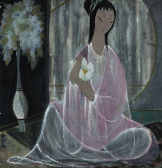 林风眠 《捧白莲红衣仕女》 主办方提供