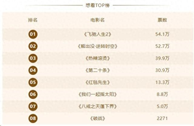 《飞驰人生2》以54.1万的想看指数暂居榜首。