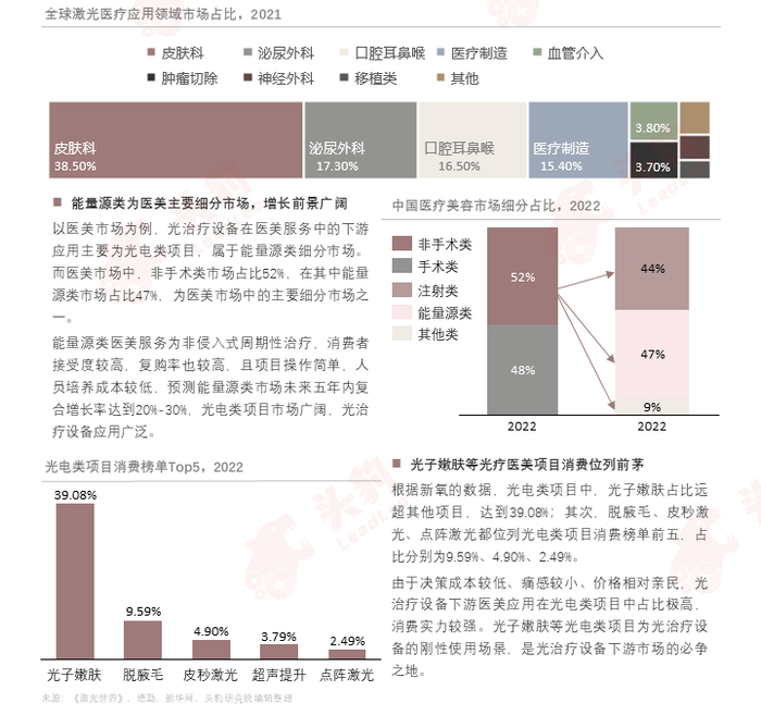 光疗设备在皮肤科得到了广泛的应用,而医美中的光电类项目是其中的一个关键领域。