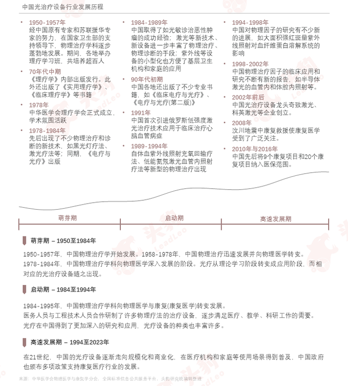 本文,头豹研究院将从光治疗设备行业发展历程、政策概览切入分析,并围绕其产业链上中下游和市场规模、驱动因素及竞争格局等,挖掘潜在的商业与投资机会。