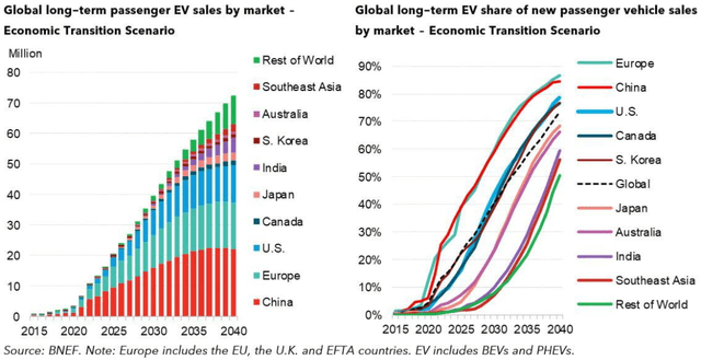 更大的进步空间代表着未来更大的利润。据彭博社预计,截止2040年,新能源汽车渗透率将达75.3%。那么,在市场渗透率尚低的当下,布局海外不仅是“开分矿”,多一份收入来源,更是对未来海外市场爆发性增长的未雨绸缪。