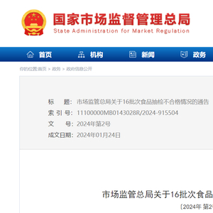 市场监管总局关于16批次食品抽检不合格情况的通告