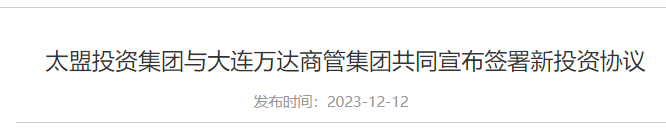 太盟投资集团(PAG)与大连万达商管集团签署新投资协议。