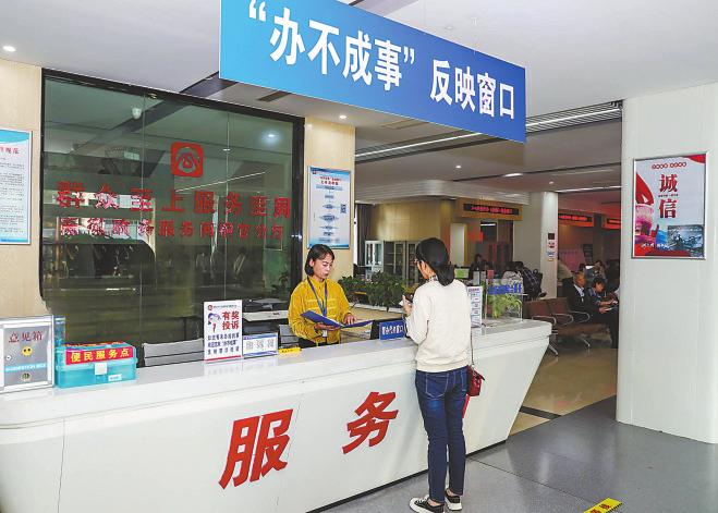 2023年11月6日,铜官区公共服务中心“办不成事”反映窗口,工作人员解答办理人的相关咨询。高凌君/摄