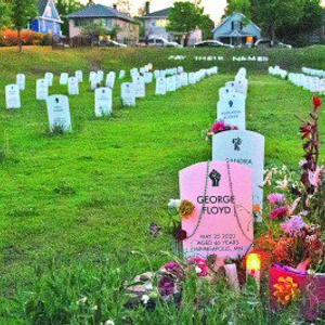 图为2023年5月25日美国明尼苏达州明尼阿波利斯市弗洛伊德墓碑前摆放的鲜花。新华社发