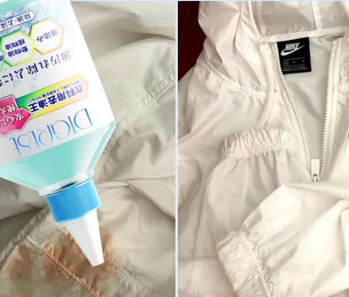 只需要把原液滴在干衣服油渍处