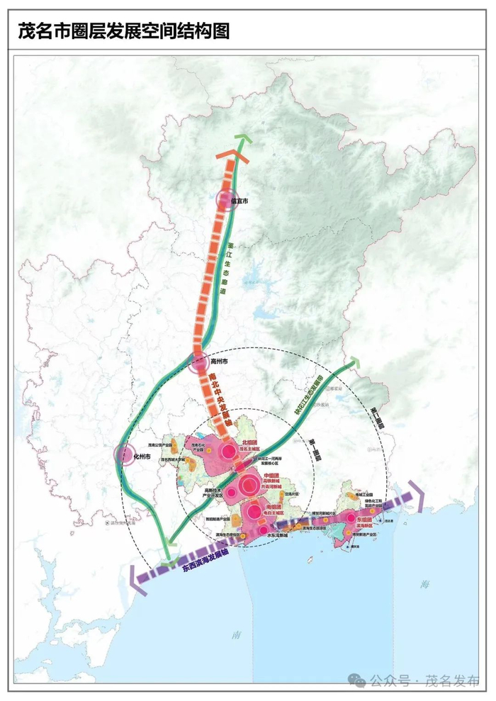 从城市发展的历史逻辑和空间分布来讲,“茂名新城”含括了共青河新城、水东湾新城、博贺湾新城,但考虑到构建“两轴—两个圈层”城市布局不是朝夕之功,建设时序上也应有先有后、有急有缓,近期,根据发展的可能和需要,“茂名新城”核心区及重点发展区主要在共青河片区、高铁片区和茂东片区;随着产业导入和“第二圈层”的规划建设,水东湾新城和博贺湾新城建设也将是应时而变、加快推进的过程。