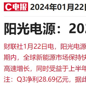 在业绩预告中,阳光电源表示,报告期内全球新能源市场保持快速增长,公司光伏逆变器、储能系统、新能源投资开发等核心业务实现高速增长。同时受益于上半年外币汇率升值、海运费下降等因素,公司归母净利润大幅增长。另据媒体报道,阳光电源投资者热线工作人员表示,考虑到2023年公司净利的增长是由运费下降、汇率等多重有利因素叠加导致,2024年毛利水平可能会回归一个正常的水平线,但总体收入应该还是会有增加。
