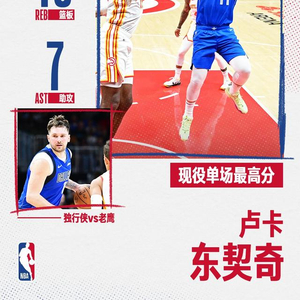 据数据统计,东契奇是NBA历史上第一位以超过75%命中率砍下70+的球员。同时,他也超过米切尔和利拉德,成为现役单场得分最高的球员。
