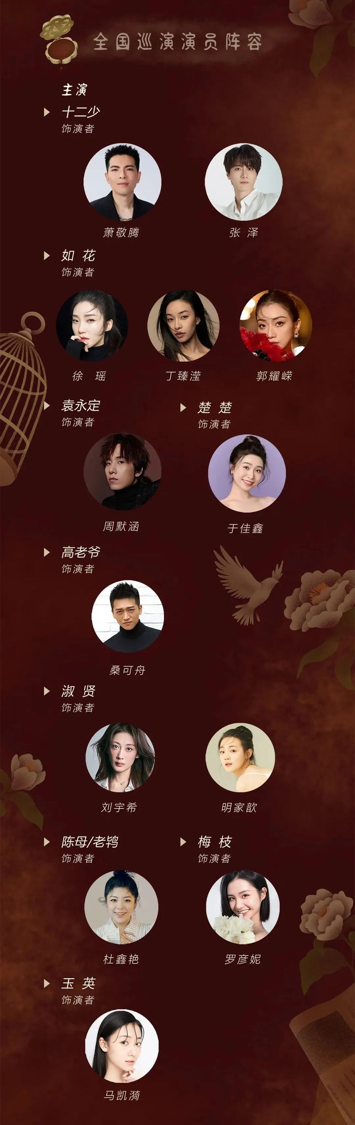 这部音乐剧《胭脂扣》改编自著名作家李碧华同名小说,由百老汇知名音乐剧导演卓依·马可尼里执导,萧敬腾、张泽、徐瑶等担纲主演,并汇聚了文雅、章明珠;张筱真;马达;陈敏正;萧丽河等国内一流创作班底。