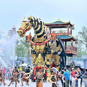 今年春节期间,成都融创乐园将以“烟火年年·欢乐年”为主题。初一到十五,9大巨型花车,4大主题方阵,数百位演员阵容,将为游客带来充满欢乐的新春大巡游。游客还可以参与投壶、套圈、弹弓等丰富多彩的好彩龙年俗活动,打卡喜庆的好彩龙艺术装置,和龙形人偶一起欢乐互动。