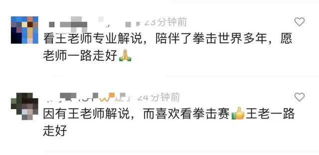 @ALA萌萌哒:我爷爷是拳击迷,从小几乎每周都和爷爷一起看拳赛,听王老师的解说。王老师还比我爷爷小两岁……爷爷听到这个消息应该也会像失去老朋友一样伤感吧