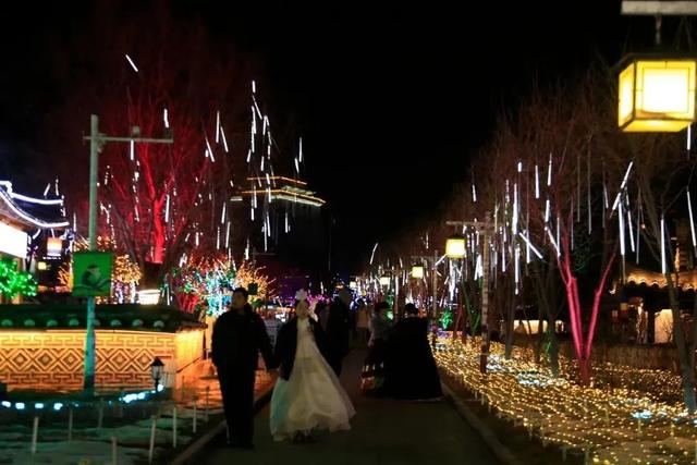 白天可以逛逛“年货大集”、在年猪宴上实现铁锅炖自由、看大型沉浸式爆笑喜剧《穿越疯人院》、玩转冰雪乐园……而当夜幕降临,这里的精彩才刚刚开始,之乎者也disco、莲花仙子飞天赐福、万紫千红烟花秀将会精彩上演,排面直接拉满!