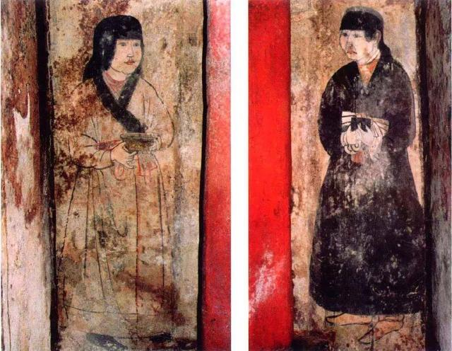 墓中还出现了身穿长袍的仆妇形象,相比苏蕙和杨贵妃,仆妇显然才是墓主人生前见得最多的身边真实女性,她们并没有故事流传下来,但我们却又最能想象她们的故事。设计或搭建这座古墓的人,可能并非刻意要将这样三个维度的女性展现到我们面前供我们思考,在这个专属于墓主的私人身后空间里,这些却构成了她的现实和幻想。在诸多她所知的历史或故事女性中,选择了苏蕙与杨贵妃与自己长眠相伴。这种集合历代美人绘于一个空间之中,此墓或许是目前所见的最早实证。