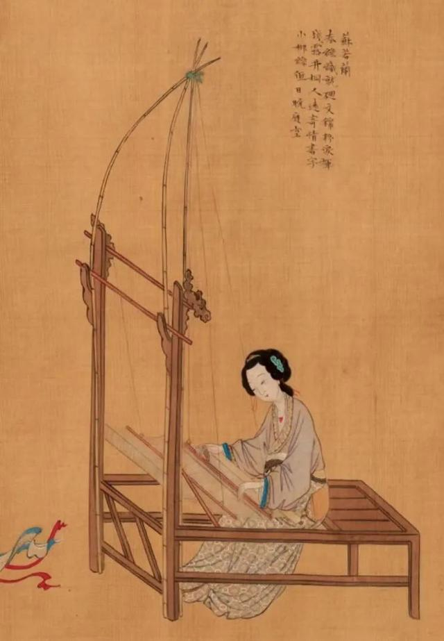 如果璇玑图的“回文”证明了苏蕙的文学才能,而总是被人忽略的“织锦”载体更是展现了苏蕙超凡的织造水平。与苏蕙有关的图像中不少都出现了织布场景,但所用的织机差异极大,可见画家仅将织布作为苏蕙的身份标识,而非真正意义上的情景再现。如《千秋绝艳图》中的苏蕙,操作着一架单人操作的织机(画家有所略笔),《天工开物》中称作腰机,《农书》称作卧机。