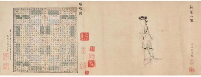 仇英、陆师道名下的《苏蕙小像与璇玑图》。