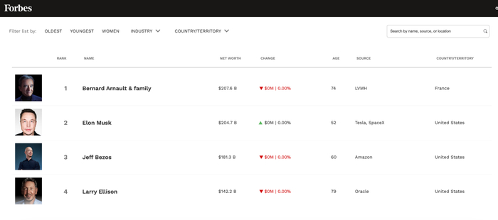 近年来全球首富的宝座变动频繁,但马斯克和阿尔诺却是“常客”。