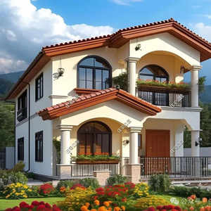 别墅外观采用温馨亮丽的暖色调,显得立面造型丰富有看点。清晨的第一缕阳光照射在这栋乡村别墅上,开启美好新生活。