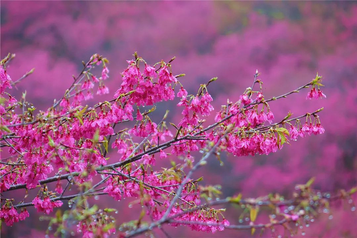 整片的红粉樱就会接着盛开