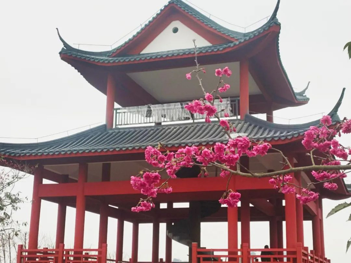 园中有中国红、牡丹樱等樱花盛开