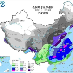 中央气象台预计,1月31日至2月5日,我国中东部地区将出现大范围持续性雨雪冰冻天气,10省将出现暴雪或大暴雪,河南、山东、湖北等地的累计降雪量具有极端性,河南、湖北、安徽、湖南、贵州5省将出现冻雨,长江以南地区雨势也不弱,并伴有雷电,预计此次雨雪持续时间为今冬以来最长,影响范围也最广。
