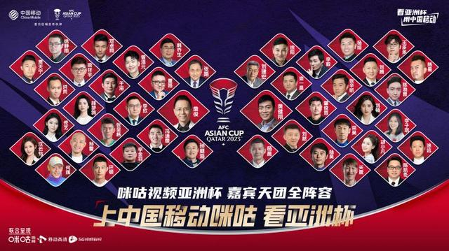 本次亚洲杯的比赛,中国移动咪咕延续以往重磅赛事解说优势,打造豪华解说天团,陪伴球迷见证亚洲足球精彩。咪咕王牌足球解说嘉宾詹俊、黄健翔、张路、徐阳、董路、娄一晨、刘越等将悉数亮相,孙继海、杨晨、冯潇霆、李毅、于海等前国脚倾情加盟,为观众带来专业且富有深度的赛事解说及赛场解读。此外,跨界解说管泽元、王多多、徐静雨也将做客咪咕演播室,为球迷带来他们的独到见解和思考。知名女主播林梦鸽、刘畅等将共同助力,陪伴球迷看球聊球评球,共享亚洲杯激情。