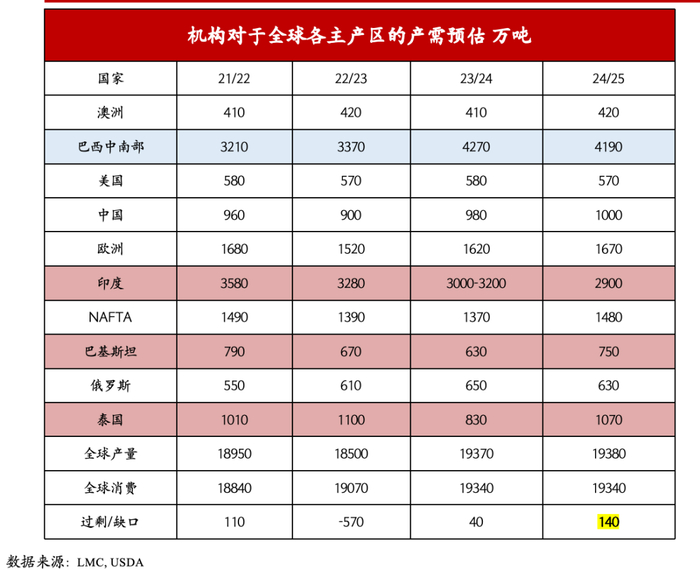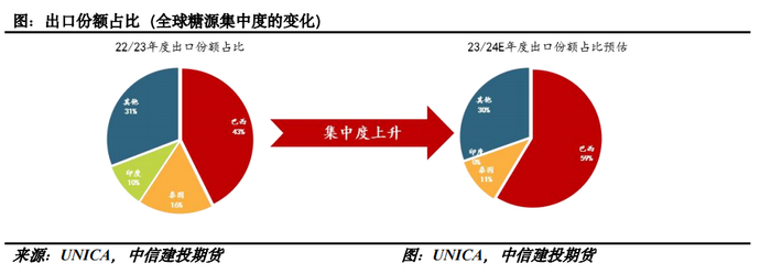 根据机构预估,24/25年度全球食糖供需小幅过剩继续维持紧平衡状态;此外由于印度和泰国出口量的缩减,全球糖源集中,巴西糖在全球的定价权上升,意味着供应端容易爆发,进而引发资金的炒作,促使价格的剧烈波动。