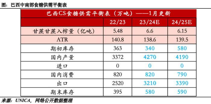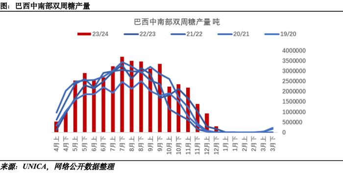 但是,1-2月圣保罗的降雨值得关注,甘蔗产量的不确定性。23/24榨季巴西的利空都已完全兑现,11-12月属于巴西的传统雨季,但是今年反常的偏少,有利于23/24的生产进度,因为双周压榨数据创造了历史新高,有利于生产。