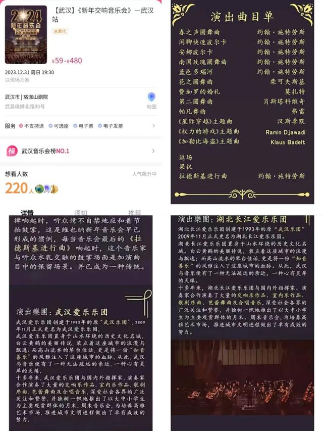 就在几天后,业内又发生一起事件。12月30日,武汉爱乐乐团在其公众号发表声明,指出大麦网发布的2023年12月31日,在珞珈山剧院演出2024武汉新年交响音乐会与武汉爱乐乐团无关。