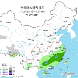 29日至30日,江南中南部、华南北部等地有中到大雨,局地暴雨;青藏高原东部和北部、东北地区中南部、内蒙古东南部等地有小到中雪或雨夹雪,局地有大雪或暴雪。
