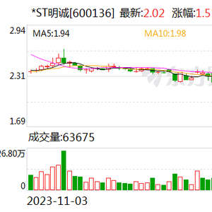 在如此消息下,*ST明诚的股价将如何演绎?文章来源:界面新闻原标题:*ST明诚年审机构上任一个月“不干了”,交易所火速问询