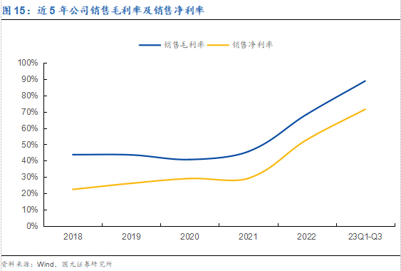 2022年,公司总体营收20.04亿元,同比增长108.62%,实现归母净利润10.52亿元,同比增长274.48%。根据公司业绩预告,2023年预计实现归母净利润47.5-53.3亿元,同比增加351.44%-406.56%,公司业绩在2022年高基数基础上实现快速增长。