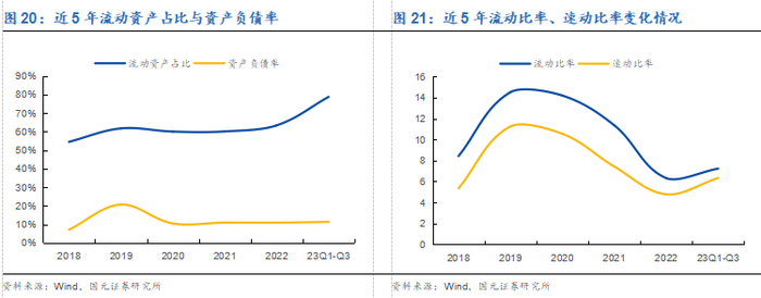 公司经营活动现金流净额呈现出波动上升趋势。2022年经营活动现金流净额高达4.85亿元,同比+998.48%,主要系公司销售规模增长,回款增加。公司2020年以来应收账款周转天数和存货周转天数逐年下降,反映公司应收账款和存货的管理效率不断提高。公司流动资产占比保持在60%左右,近3年资产负债率在10%左右。公司近5年流动比率6.0以上,速动比率4.5以上,均保持在较高水平,流动性较好,短期偿债风险较低。