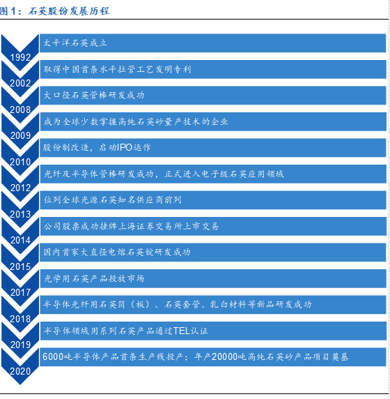 公司始建于1993年,前身是集体所有制企业平明石英,后更名为太平洋制品,1999年集体企业改制为太平洋有限,2010年完成股份制改造并启动IPO运作,2014年在上交所A股主板上市。