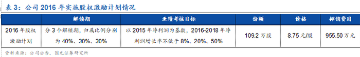 公司2016年实施股权激励计划,分3个解锁期,归属比例分别为40%、30%、30%,业绩考核目标以2015年净利润为基数,2016-2018年净利润增长率不低于8%、20%、50%。此外,公司于2018年、2020年、2021年、2023年推出4期员工持股计划,持有股数分别为182.11万股、346.70万股、151.57万股、149.16万股,人员范围包公司及下属子公司的董事、监事、高管、中层、核心技术、业务骨干等。