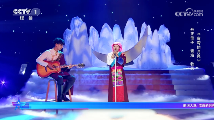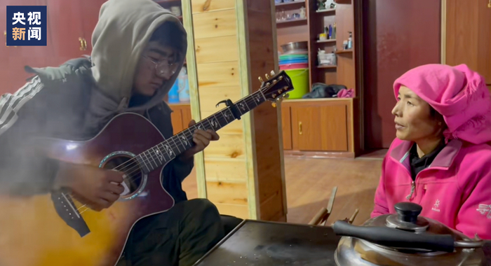 突如其来的关注,让丹正非常惊喜。他征求妈妈的意见,“要不要再唱几首”,原本就热爱唱歌的妈妈欣然同意。于是,丹正抱起吉他坐在妈妈身边。清唱之间,母子二人切切低语,默契对视,每每望向儿子,根藏卓玛眉眼中尽是欢喜与依赖。