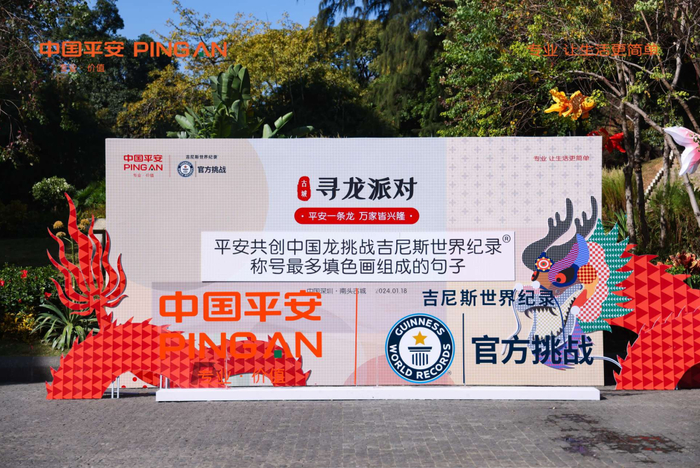 邀请了1000名大湾区客户家庭相聚古城,共同为平安龙填色画拼字,现场挑战“称号最多填色画组成的句子”这一吉尼斯世界纪录。