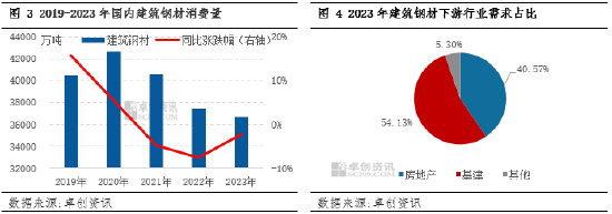 2024年基建项目需求有所增加,房地产行业遇冷,在整体房地产行业占据比例较大的背景下,房地产行业的大幅缩减,使得建筑钢材市场需求量或逐步呈现下降状态。