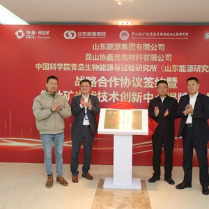 1月27日下午,中国科学院青岛生物能源与过程研究所(山东能源研究院)与山东能源集团、昆山协鑫光电材料有限公司战略合作协议签约暨钙钛矿光伏技术创新中心揭牌仪式在青岛举办,标志着传统能源大省山东,国家队扛起新能源转型担当,启航钙钛矿光伏技术创新。