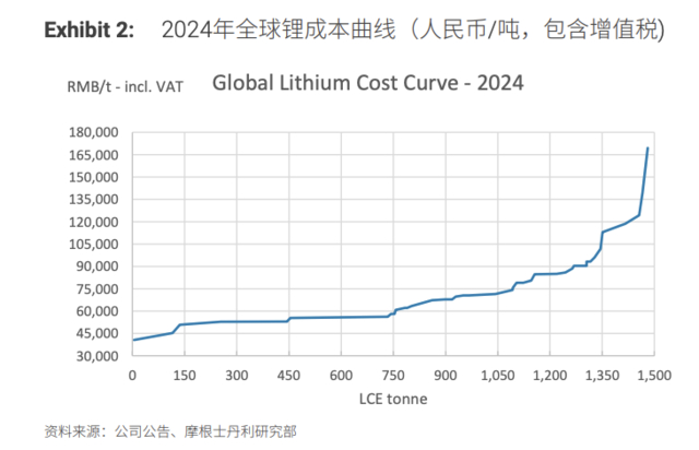 摩根士丹利认为,在2024年约148万吨LCE的锂矿预期产量中,1/4的锂生产成本超过8万元/吨,其中,大约15万吨LCE已经出现亏损。